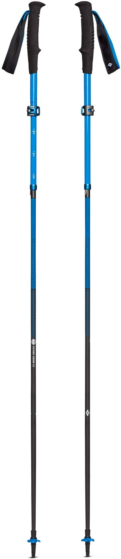 Distance Carbon FLZ Trekking Poles er lavet af let og stærkt kulfiber og længden kan med 20 cm. reguleres ved hjælp af den patenterede FlickLock® Pro -lukning, som er udviklet af Black Diamond. Et system, hvor man aldrig oplever, at staven skubbes sammen ved stor belastning – og dette endda uden, at man behøver at være stor og stærk for at lukke samlingen!