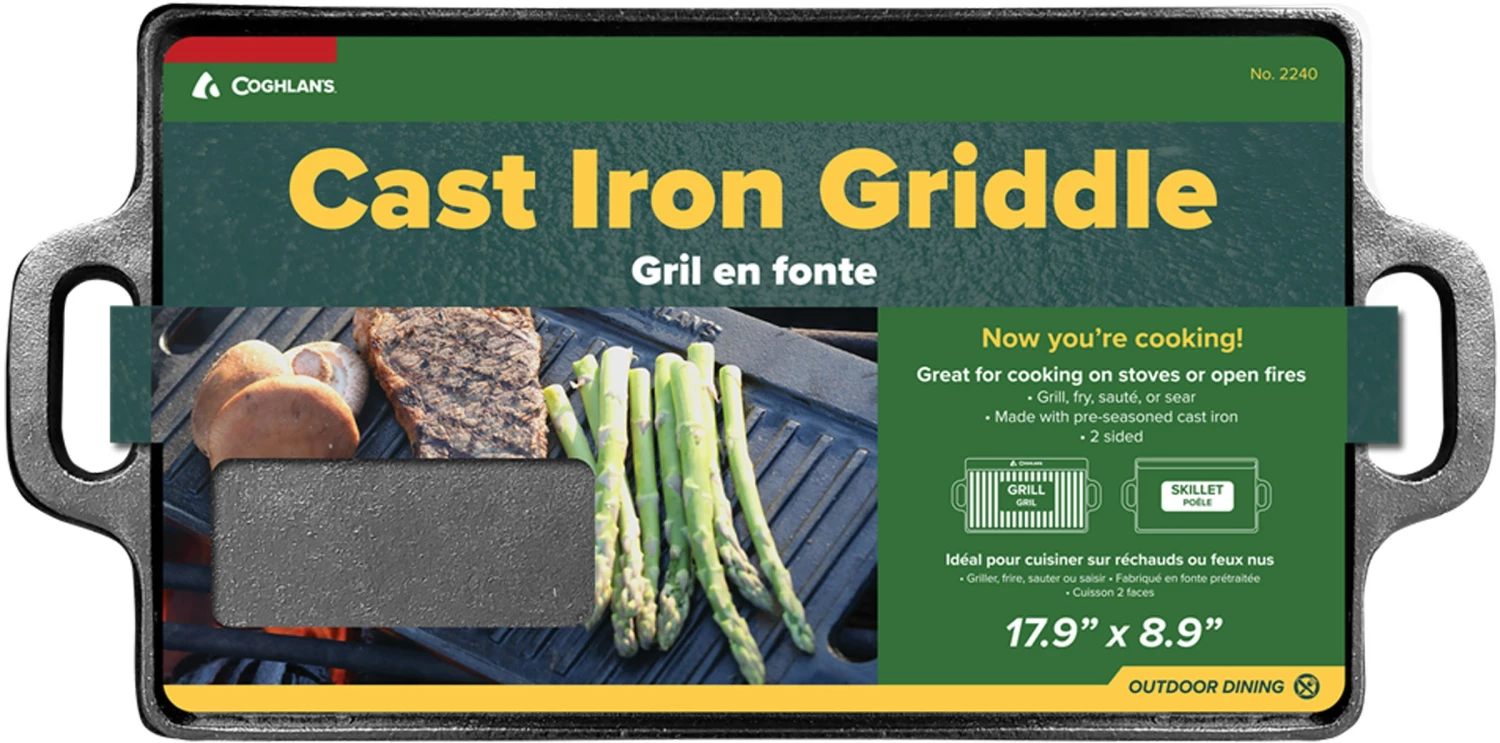 Gør grillning og stegning over åben ild nemmere end nogensinde med denne Coghlan’s Cast Iron Griddle.