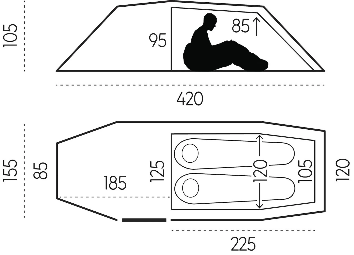 Det både særdeles robuste og lette Fjällräven Abisko Endurance 2 Tent er, som navnet antyder, stort nok til to personer og disses bagage. Et rummeligt, stærkt og brugervenligt telt, som du trygt kan medbringe på selv de hårdeste fjeldture året rundt. Oversejlet er fremstillet i en nyudviklet, let og rivstærk TripleRip Nylon, som på begge sider er silikonebelagt for at sikre 100% vandtæthed og stor slidstyrke. Et innovativt materiale, som består af en kombination af 20 denier nylon på den øverste del og et nedre panel langs jorden af en kraftigere 40 denier nylon, hvor der altså er størst slitage. Resultatet er et tekstil med meget høj riv- og slidstyrke i kombination med en ganske lav vægt.