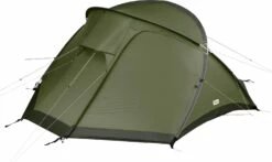 Abisko View 2 Tent rejses ved hjælp af to krydsende stænger, som holder konstruktionen oppe og giver et meget vindstabilt telt. Når stængerne føres igennem løbegangene, er teltet selvstående, så du kan løfte det og placere det på bedst mulig måde. De fire dobbeltbarduner sikrer god vindstabilitet og holder teltet godt fast til jorden. Inderteltet er forbundet med yderteltet med en særlig sammenkobling, således du kan rejse teltet i regnvejr, uden at inderteltet bliver vådt.
