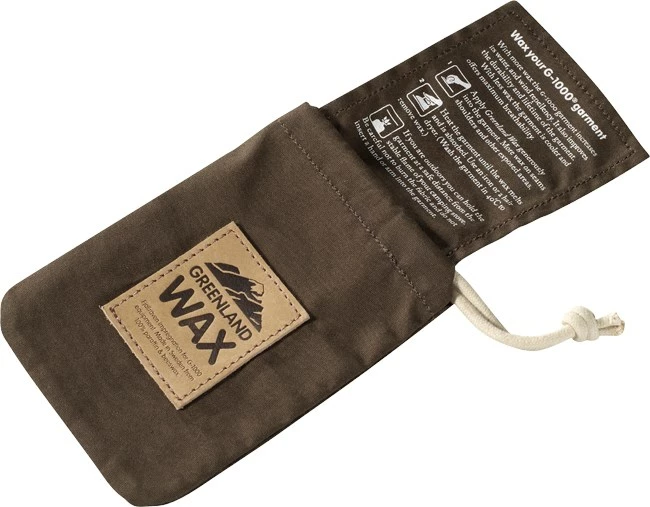 Den miljøvenlige Greenland Wax er fremstillet af paraffin og bivoks og er egentlig udviklet til Fjällrävens beklædning i G-1000® -materialet, men kan selvfølgelig også bruges til andre former for bomuldsbeklædning, hvor man ønsker at højne såvel de vandafvisende egenskaber som tekstilets slidstyrke. Fjällrävens G-1000® -beklædning er behandlet med Greenland Wax fra fabrikken, men dette slides i sagens natur af efter noget tids brug og vask.