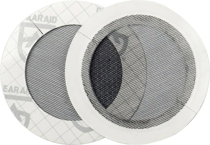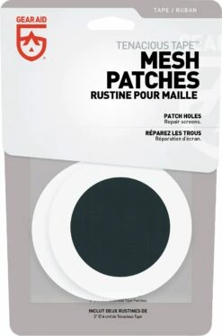 Tenacious™ Mosquito Net Repair Kit indeholder tre transparente Tenacious™ Tape klæberinge med en diameter på 7,6 cm. og to myggenetslapper på hver 6,3 cm.