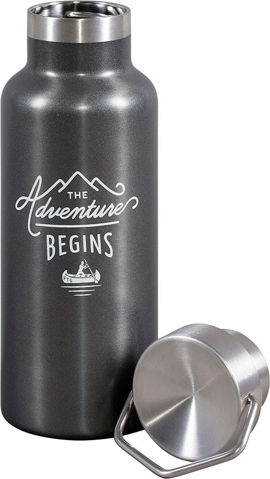 Er du træt af plastikflasker eller aluminiumsflasker i alle regnbuens farver, vil du sætte pris på denne både robuste og meget stilfulde Adventure Begins Water Bottle i rustfrit stål.