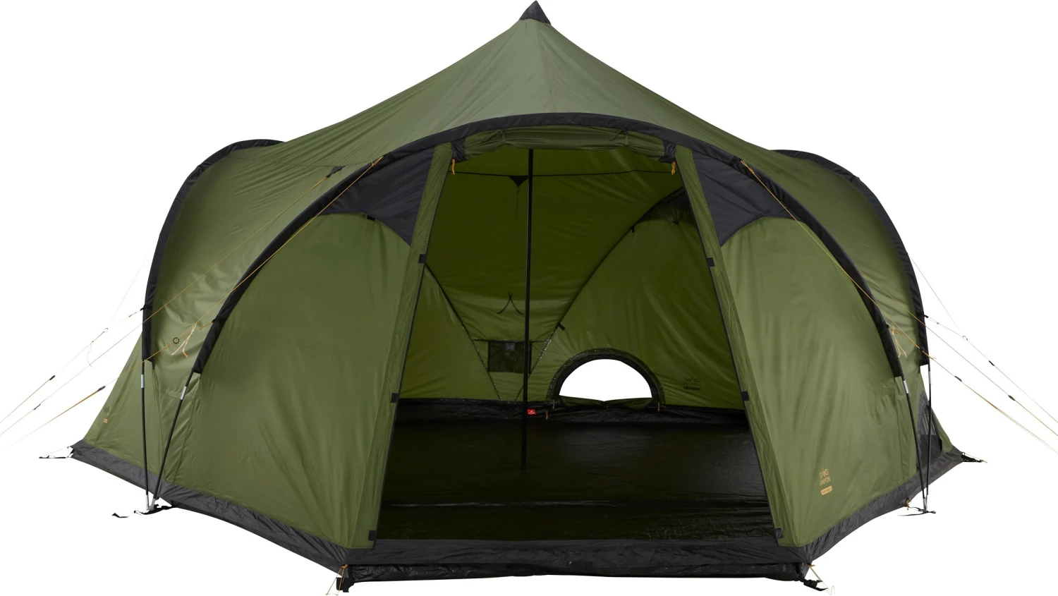 Dette meget store Black Knob 10 Tent er således velegnet som samlingstelt eller som nævnt hjemme i haven til de overnattende gæster, for den sags skyld. Det enormt store opholdsrum levner god plads til både bord og stole eller cyklerne og de tre store indgangspartier og de regulerbare ventilationsåbninger i bunden giver mulighed for masser af luftgennemstrømning i teltet, så det rette klima opnås. Og når alle tre døre er åbnet, er teltet et dejligt skyggefuldt sted at samles en varm sommerdag.