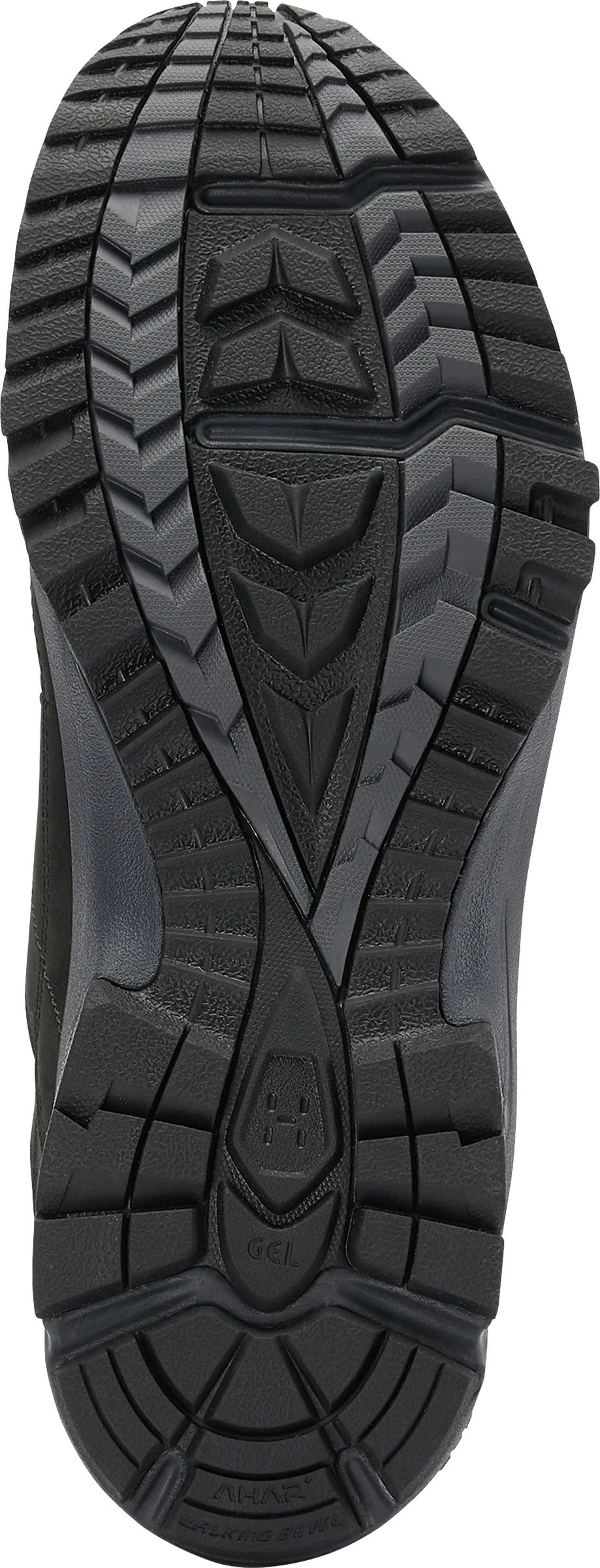 Det særlige Trusstic™ -indlæg under midterfoden sørger for god torsionsstivhed og – pga. det moderate fleks – en unik evne til at opretholde sålens kontakt med underlaget – også i kuperet terræn. De termoformbare Haglöfs Custom Comfort™ indersåler giver god svangstøtte, modvirker effektivt pronation og supination og i det hele taget giver det rigtig god støtte under hele fodens areal fra hæl til tå. Det dybe, formstøbte hælparti samler på optimal vis hælpuden og i kombination med det kraftige, støddæmpende mellemlag opnås maksimal stødabsorption.