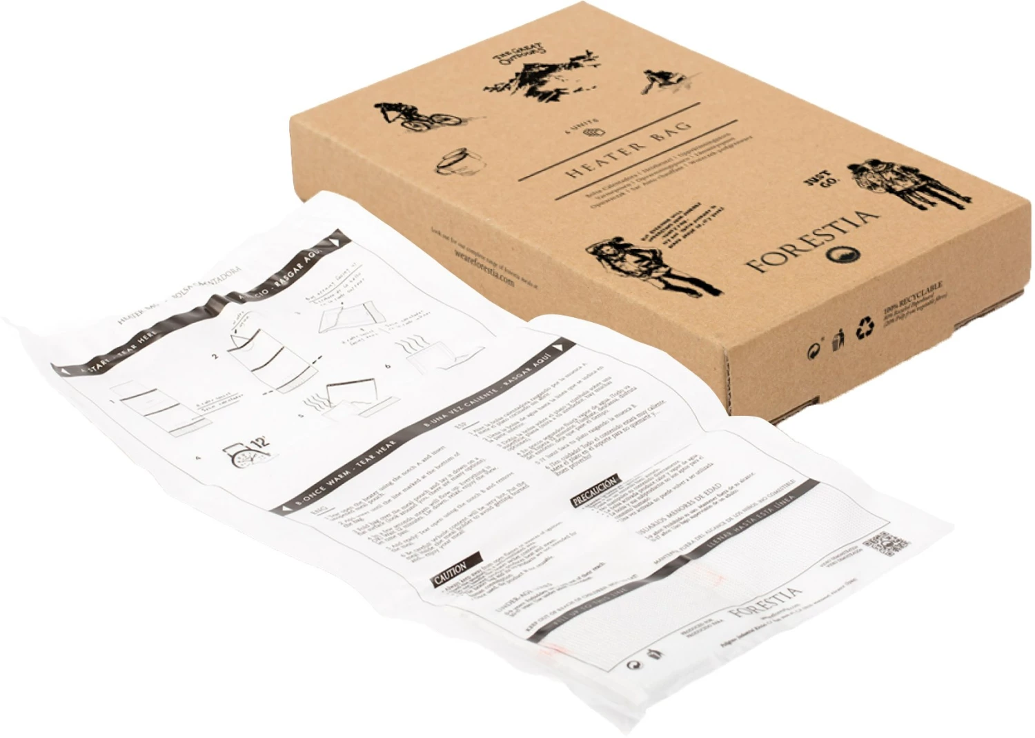 Forestia Heater Bags fungerer ved, at der blot skal tilsættes 50 ml. koldt vand for at aktivere den særlige saltblanding, som udvikler den tilstrækkelige varme, når vandet tilføres. Altså helt uden brug af kogeapparater eller bål. En smule koldt vand er altså alt, der skal til!