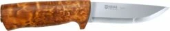 Skæftet af det karakteristiske masurbirk er ergonomisk formet og danner et naturligt fingerstop, så fingrene ikke glider ud over klingen. Det giver en virkelig god fornemmelse i hånden, og kniven ligger rigtig godt i både mellemstore og store hænder.