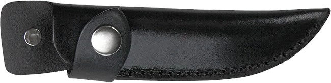 Der medfølger en velformet og knaplukket læderskede, så dolken kan fastgøres i bæltet.