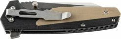 Den dobbelttandede sav er fremstillet af 3 mm. tykt, rustfrit 3Cr13 stål, og når savbladet foldes ud, låses det forsvarligt fast med en robust baglåsemekanisme. Det olivenfarvede håndtag er lavet af skridsikkert gummi og ligger rigtig godt og sikkert i hånden, selv med våde hænder. Hullet bagerst på håndtaget er praktisk, hvis du fx vil binde en snor i saven, så den ikke så nemt bliver væk.