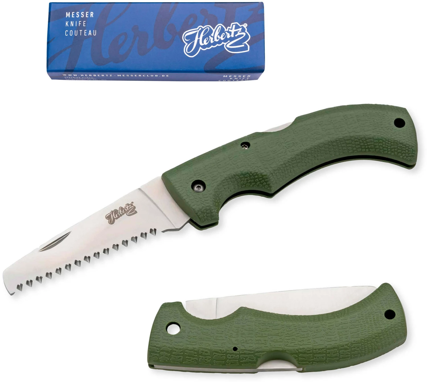 Lommeknivsfunktionen og en lille, stærk sav er kombineret i denne kompakte foldesav fra Herbertz.