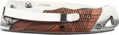 Harmonisk matterede rustfri stålbeslag er sammensat med de smukt kornede håndtagsskaller af kvædetræ, som fuldender denne meget stilfulde foldekniv.