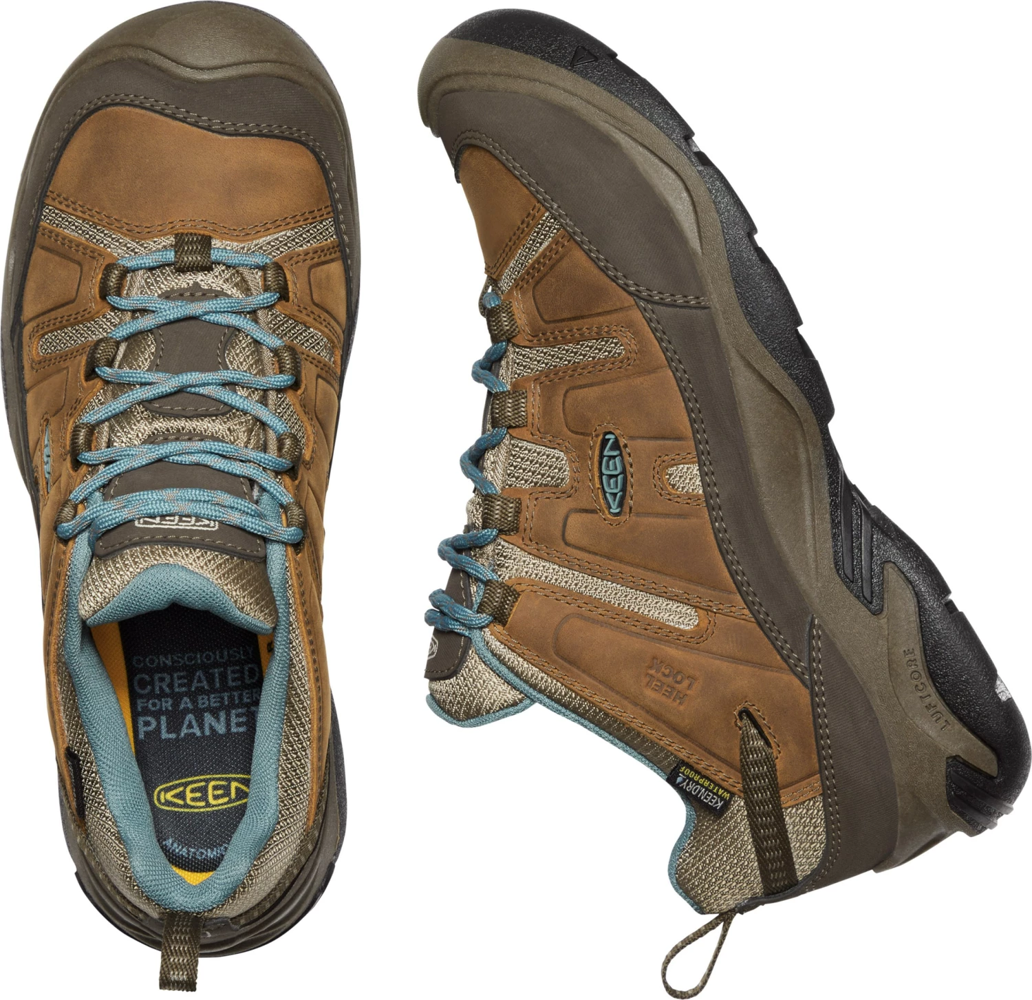 Overdelen er primært af lækkert kernelæder, som er olieret og bare føles blødt og lækkert mellem fingrene, og takket været den gennemprøvede KEEN.DRY® -membran, er Circadia WP Women 100% vandtæt og samtidig åndbar, så man kan komme af med overskudsvarmen og fugten. Skoens rigtigt gode pasform og støtte omkring foden forstærkes af den specielle KEEN.FUSION® -konstruktion: Efter at overdelen er formet omkring læsten, fastgøres den til sålen ved hjælp af en særlig svejsning. Fordelene ved denne konstruktion er flere. For det første kan man opnå den helt rigtige 3D form af overdelen og efterfølgende fastgøre den til en såltype af et andet materiale, og derudover gør denne konstruktion overgangen mellem overdel og sål afsindig stærk – helt uden brug af lim – og giver en perfekt pasform omkring foden.