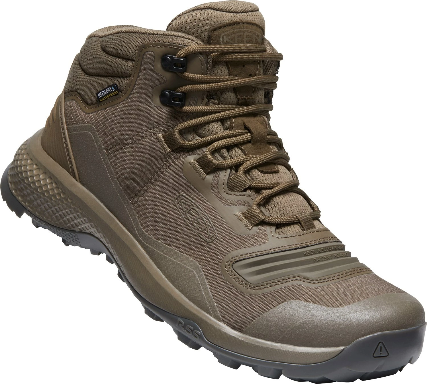 Det særlige ved denne model, er det patenterede KEEN.BELLOWS FLEX™ -system, hvor flekspanelet over forfoden afstedkommer en række åbenlyse fordele. For det første kræver det ca. 60% mindre energi at bøje støvlen fremme ved tæerne, så hvert skridt føles lettere, og for det andet er det mere slidstærkt, end den traditionelle konstruktion, da det oftest er på dette forreste stykke af støvlen, at materialet krakelerer og svækkes med tiden.