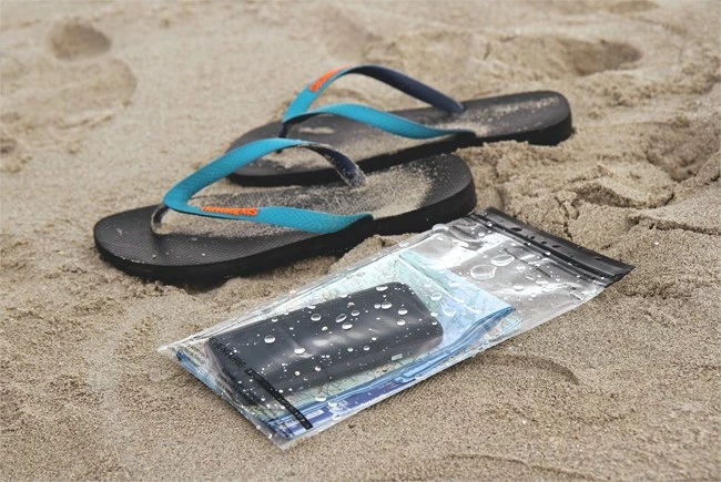 Poserne er testet vandtætte jf. IPX8-standarden, der betyder 100% vandtætte ned til 10 meter! Poserne er fremstillet i en meget fleksibel triple-polymer og den let tilgængelige skydelås sikrer absolut vind- og vandtæthed. Materialevalget gør i øvrigt, at touchscreen’en på fx iPad’en kan betjenes, når den er opbevaret i posen.