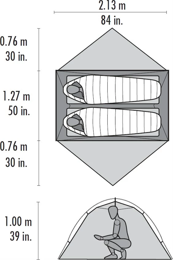 Trods den lave vægt er der ganske god plads til to personer i Hubba Hubba™ NX Tent. Inderteltet byder nemlig på en liggelængde på 213 cm, en bredde på 127 cm og en reel siddehøjde i inderteltet på op mod 100 cm, hvilket levner udmærket plads til to personer. Og i modsætning til mange konkurrerende modeller, rejses Hubba Hubba™ NX Tent med en særlig stangkonstruktion, der giver hele tre kryds, hvilket gør det meget vindstabilt. Da teltet er helt symmetrisk omkring en midterakse i teltets længderetning, er Hubba Hubba™ NX Tent udstyret med en meget rummelig apsis foran hver sideindgang i hele teltets længde, som er op til hele 76 cm. dyb, så der er plads til både de overnattendes rygsække, fodtøj og en gang madlavning i dårligt vejr.