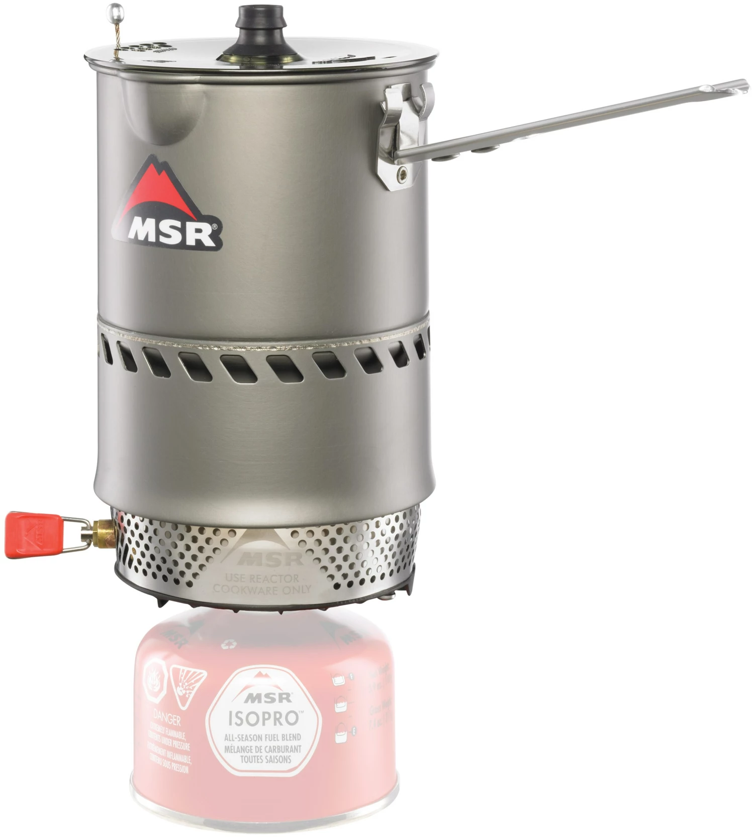 MSR® Reactor® 1.0 Stove System vejer blot 430 gram og leveres med den særlige Reactor® Pot på 1 liter, brænder, et BPA-frit låg med trykventil og sigte til kasserollen, en PackTowl® Pot Protector, så du ikke brænder nallerne og til almindelig beskyttelse, når tingene pakkes i gryden, et nedfældbart håndtag til gryden, som samtidig fungerer som lås til låget, der dog nemt kan skubbes af, hvis det ønskes.
