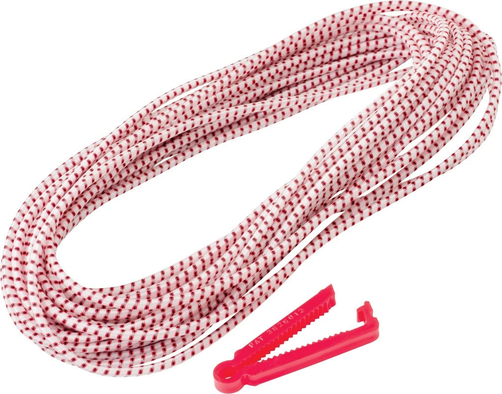 Med dette Shock Cord Replacement Kit, 9 m kan du hurtigt skifte elastiksnoren i stængerne til dit 2-3 personers fjeldtelt. Den 3,5 mm kerne er af silikonegummi, som har en langt længere levetid, end den naturgummi, der ellers bruges.