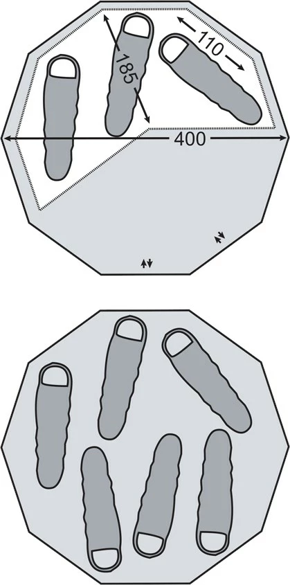 Alfheim 12.6 Zip-In Floor går lidt op ad siden på yderteltet, så man ikke får vand ind i kabinen, når teltet skal anvendes på våde underlag.