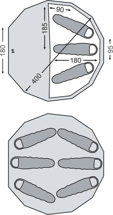 Asgard 12.6 Zip-In Floor går lidt op ad siden på yderteltet, så man ikke får vand ind i kabinen, når teltet skal anvendes på våde underlag.