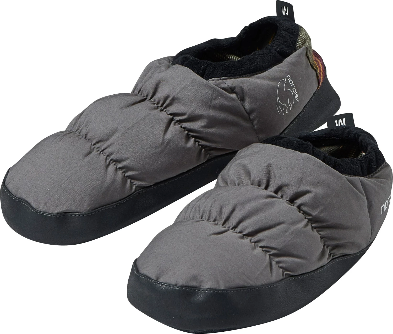Nordisk har igennem efterhånden mange år haft stor succes med deres lækre dunsko, og seneste model er disse Hermod Down Shoes, som er et par utroligt lækre og lune, dunfyldte indesko, der er skønne at trække på efter en lang dag på ski, som varmeforstærker til fusserne i soveposen eller til almindeligt hyggebrug i teltet eller derhjemme.
