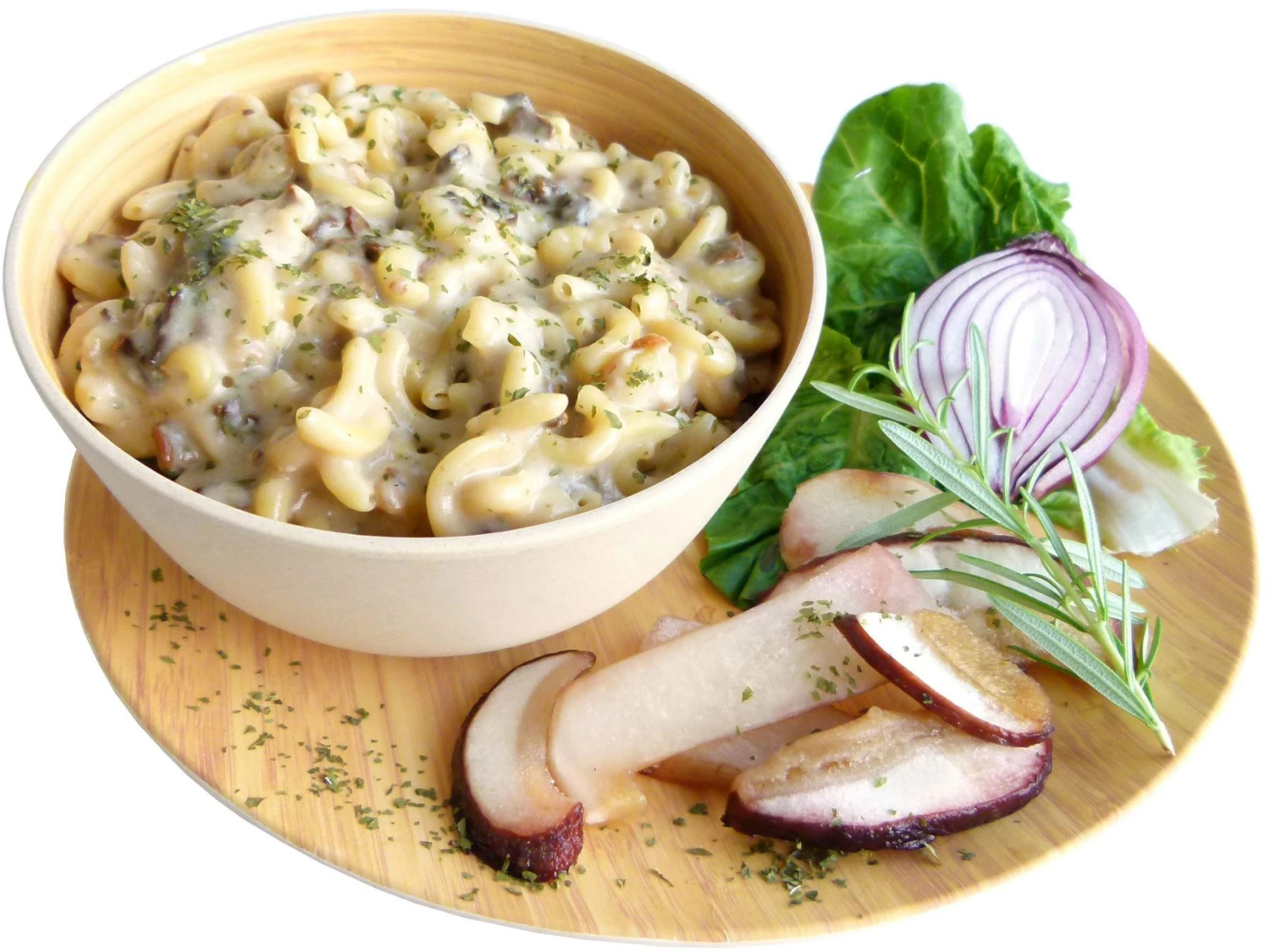 Ingredienser: Pasta 44 % (hvedesemulje, æggeprotein, salt), modificeret stivelse, gul boletus 8 %, sødmælkspulver, smørpulver, flødepulver, ristede løg 4 % (løg 76 %, palmefedt, hvedemel), palmefedt, maltodextrin, laktose, mælkeprotein, salt, urter, krydderier, smagsstoffer, gærekstrakt, tomatpulver, løg.