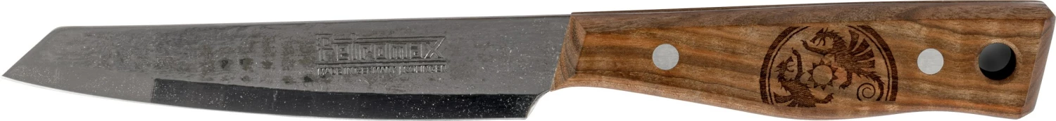 Petromax All-Purpose Knife, 14 cm er en fantastisk alsidig lille køkken- og urtekniv, som i lighed med de større brødre i knivserien er håndlavet i Solingen. Udformningen af kniven gør den til det rette værktøj, når der skal skæres grøntsager, og finere fisk og kød. Denne eksklusive køkkenkniv er ganske enkelt den ideelle måde at kombinere stilfuld madlavning og natur i udekøkkenet. Det anvendte stål af ekstra høj kvalitet og det robuste håndtag af olieret valnøddetræ sikrer, at denne rustikke kniv vil blive dit foretrukne værktøj til en masse forskelligt arbejde i udekøkkenet.