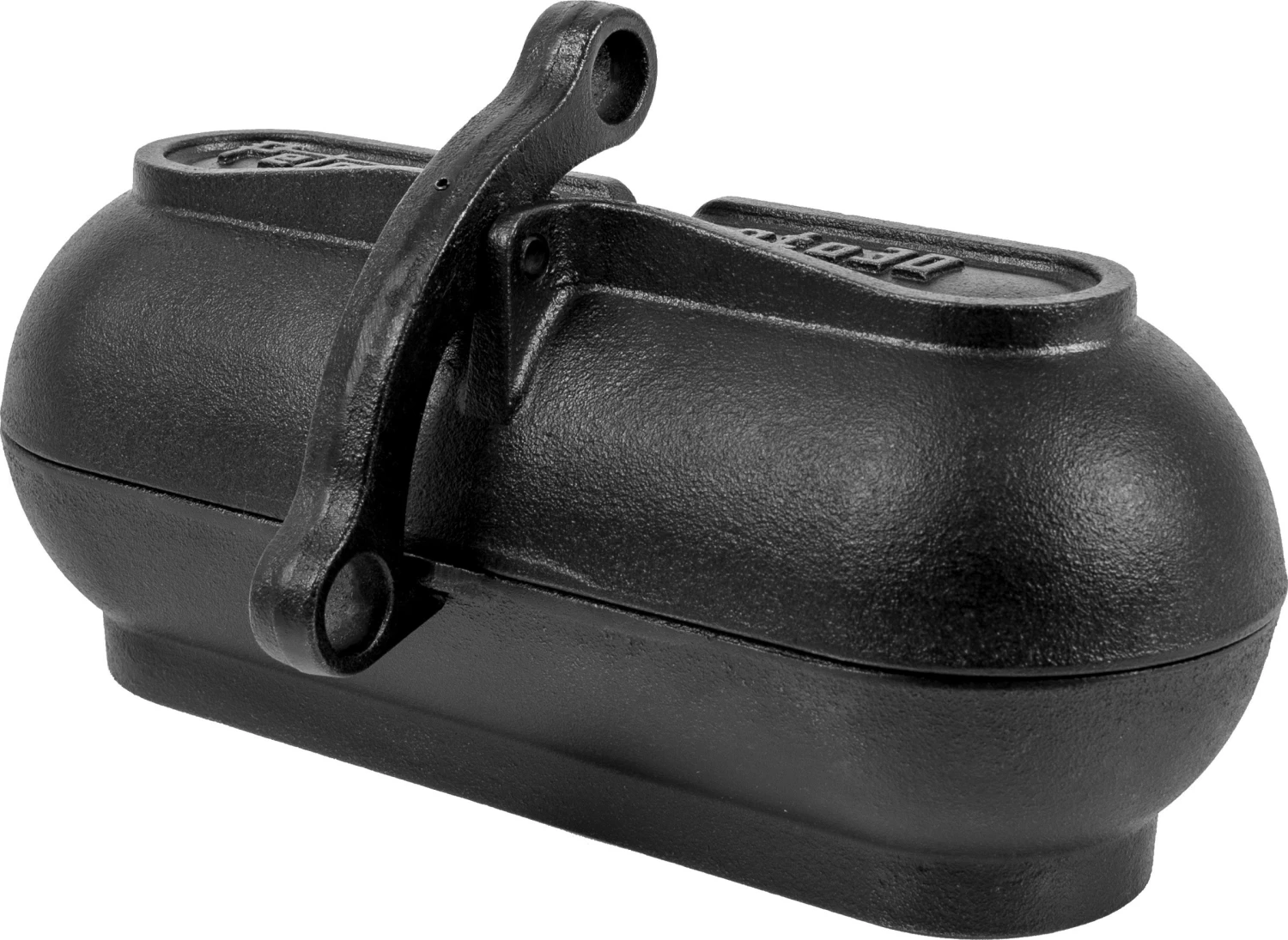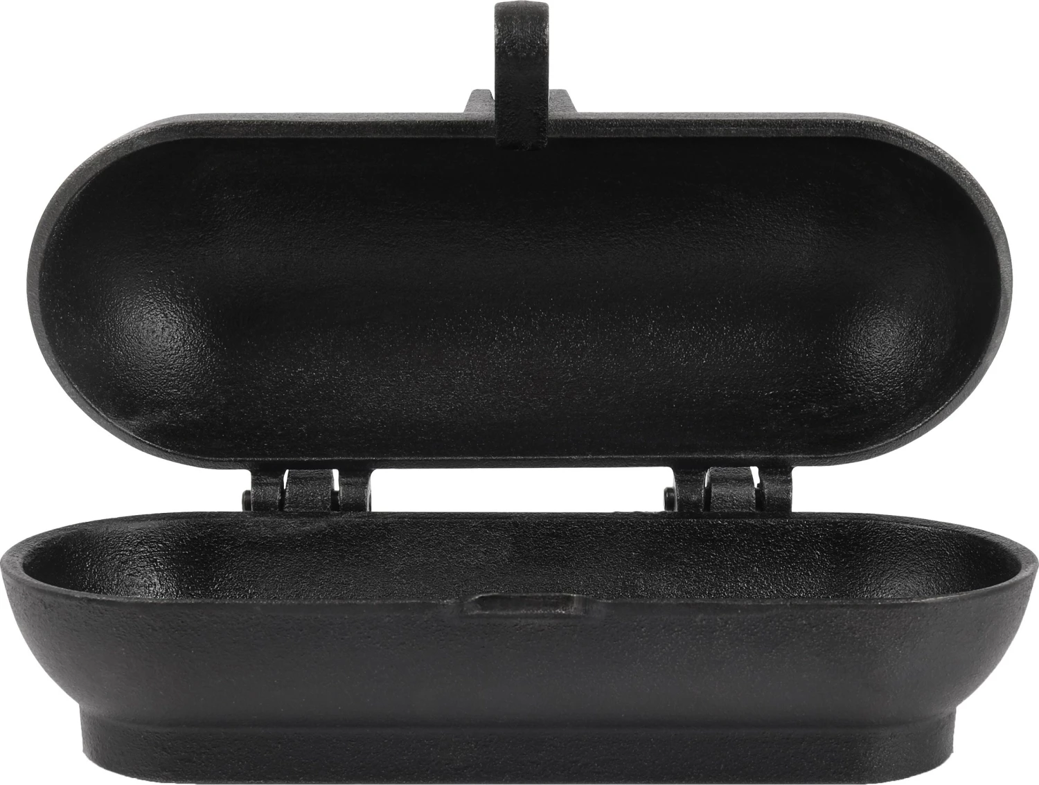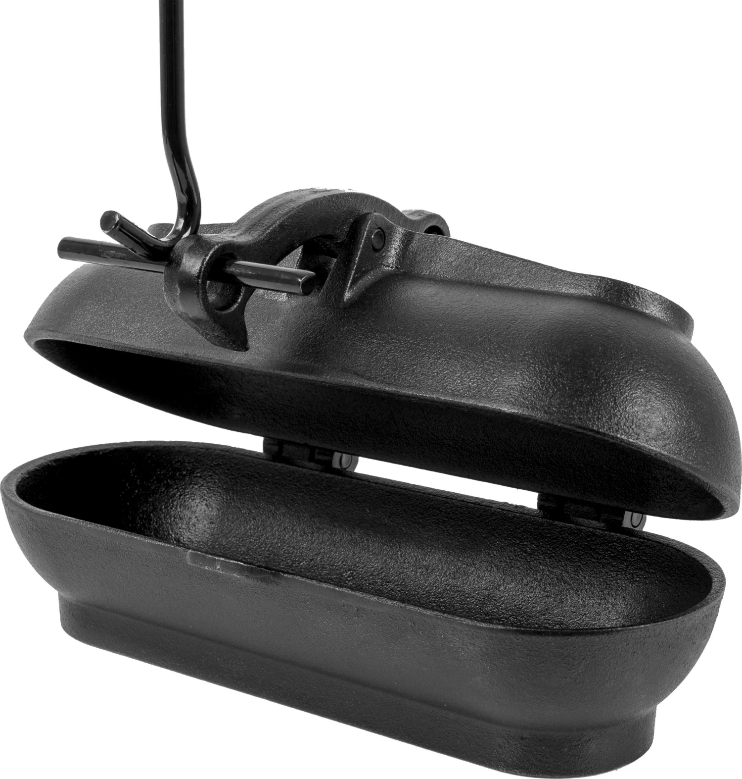 Cast-Iron Potato Cooker udmærker sig ved den smarte mekanisme, hvor den specialdesignede vippebolt låser begge halvdele af formen fast, så snart du løfter den op med din lågløfter. På den måde kan du trygt fjerne det varme støbejern fra bålet og flytte det hen, hvor det måtte ønskes. Når du hægter din lågløfter på den nederste ende af vippestangen, åbner du nemt låget på ovnen og kan servere de varme og velstegte kartofler.