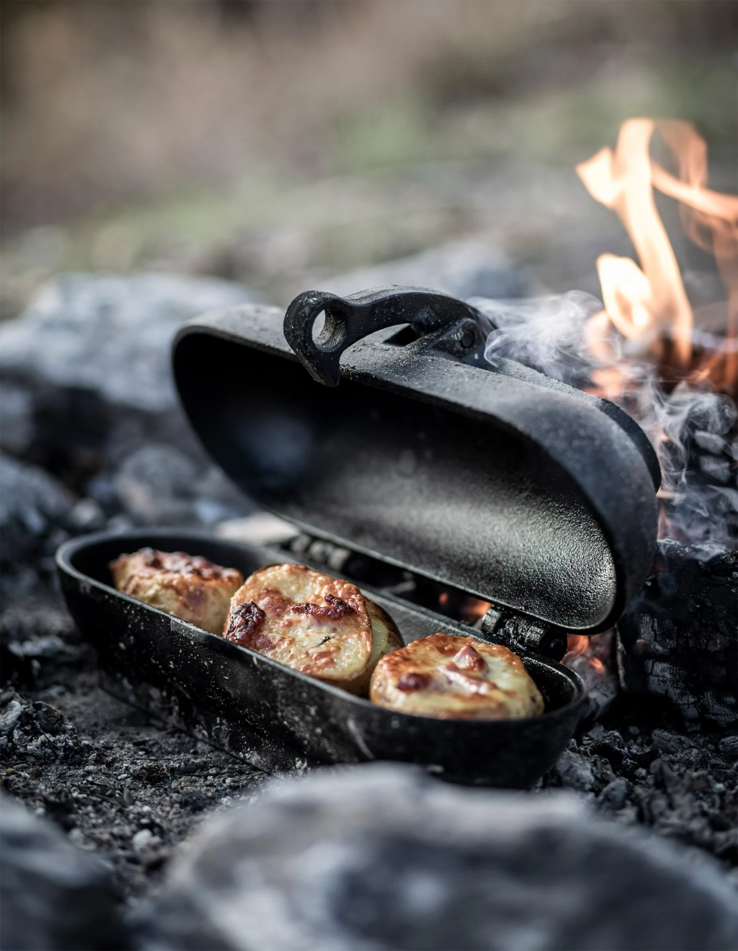 Bagte kartofler over bålets gløder – som tilbehør eller til en saftig bøf – passer bare helt perfekt til en fuldendt eventyrmenu. Med denne Cast-Iron Potato Cooker i støbejern kan du tilberede kartofler og forskellige grøntsager og bibeholde den karakteristiske stegesmag.