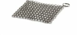 Med denne Chain Mail Cleaner, fremstillet af robust og rustfrit stål, er det bare slut med gamle madrester, der har brændt sig ubehjælpsomt fast i bålpanden eller gryden af smede- eller støbejern! Og det sker uden at ødelægge den værdifulde patina, for de indbyrdes forbundet ringe fjerner skånsomt men effektivt madresterne, uden at skrabe metallets overflade unødigt.