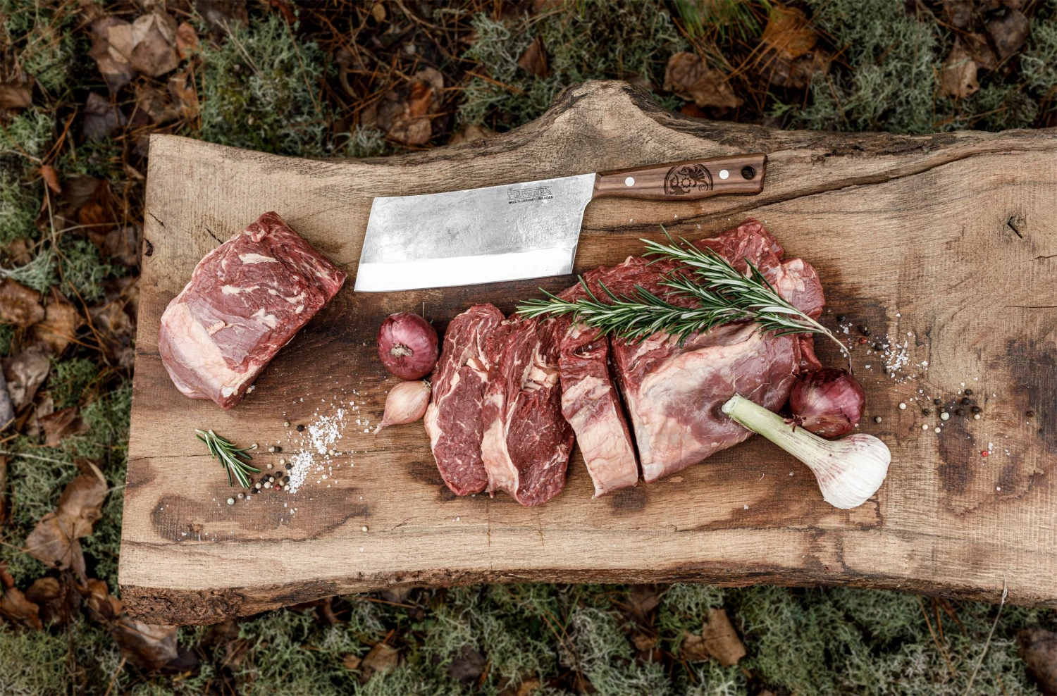 Cleaver Knife vil med sin 17 cm. lange stålklinge være den pålidelige og rustikke kniv, som kraftfuldt skærer gennem et stykke kød eller kød på ben, fx til T-bone steaks eller udskæring til koteletter. Kendetegnende for kniven er dens relativt høje vægt, som giver dig mulighed for at bruge kniven mest effektivt. Så kan du på første klasse opleve den originale udendørs madlavning, da den 4 mm. tykke klinge nemt skærer igennem alle former for ingredienser. Fuldtangekonstruktionen med den gennemgående klinge og det sømløst nittede håndtag sikrer både sikker håndtering og hygiejne.