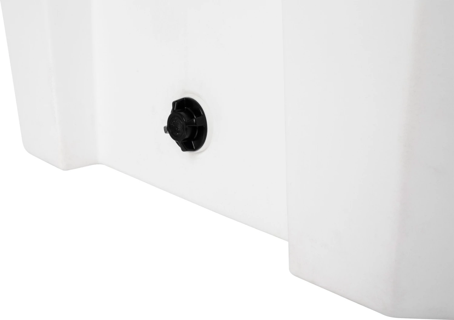 Med et isoleringslag på minimum 44 millimeter sikres en meget lang temperaturstabilitet, når den bruges på alle turene i det fri. Den robuste kasse af PE er særdeles holdbar, så du ligeledes kan bruge kassen som siddeplads eller som standplads, når du stående i båden skal have et bedre overblik over dine omgivelser. Grundet det særligt kantede design, kan køleboksen desuden stables eller stuves i lasteområdet eller under dækket på båden. Genopfyldning af is og den senere rengøring af kølerummet gøres nemt og hurtigt med det integrerede dræningssystem, hvor du til hver en tid kan dræne smeltevandet – også under brug – og forlænge køletiden i forhold til dine behov.
