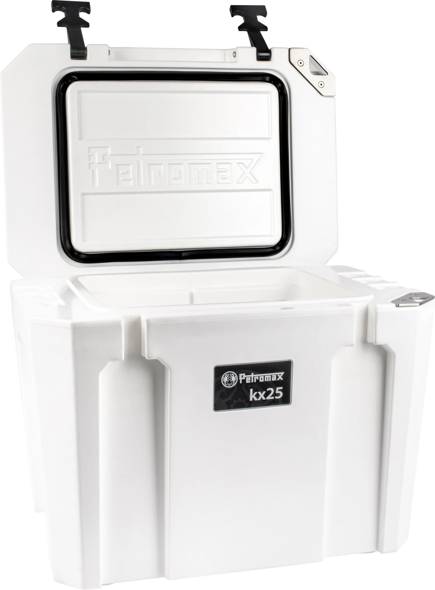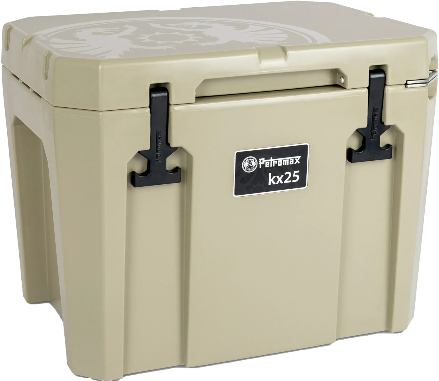 Petromax Cool Box 25L KX25 giver dig nemlig mulighed for at forsyne dig med kolde drikke, ligesom fødevarer opbevares køligt under dine flerdages eventyr. Det ultrapassive kølesystem nedkøles enten med almindelige isterninger, isposer, køleelementer eller tøris. Den dobbeltvæggede og meget velisolerede Cool Box 25L KX25 holder det medbragte nedkølet i op til 12 dage – helt uden brug af energikrævende kompressor.