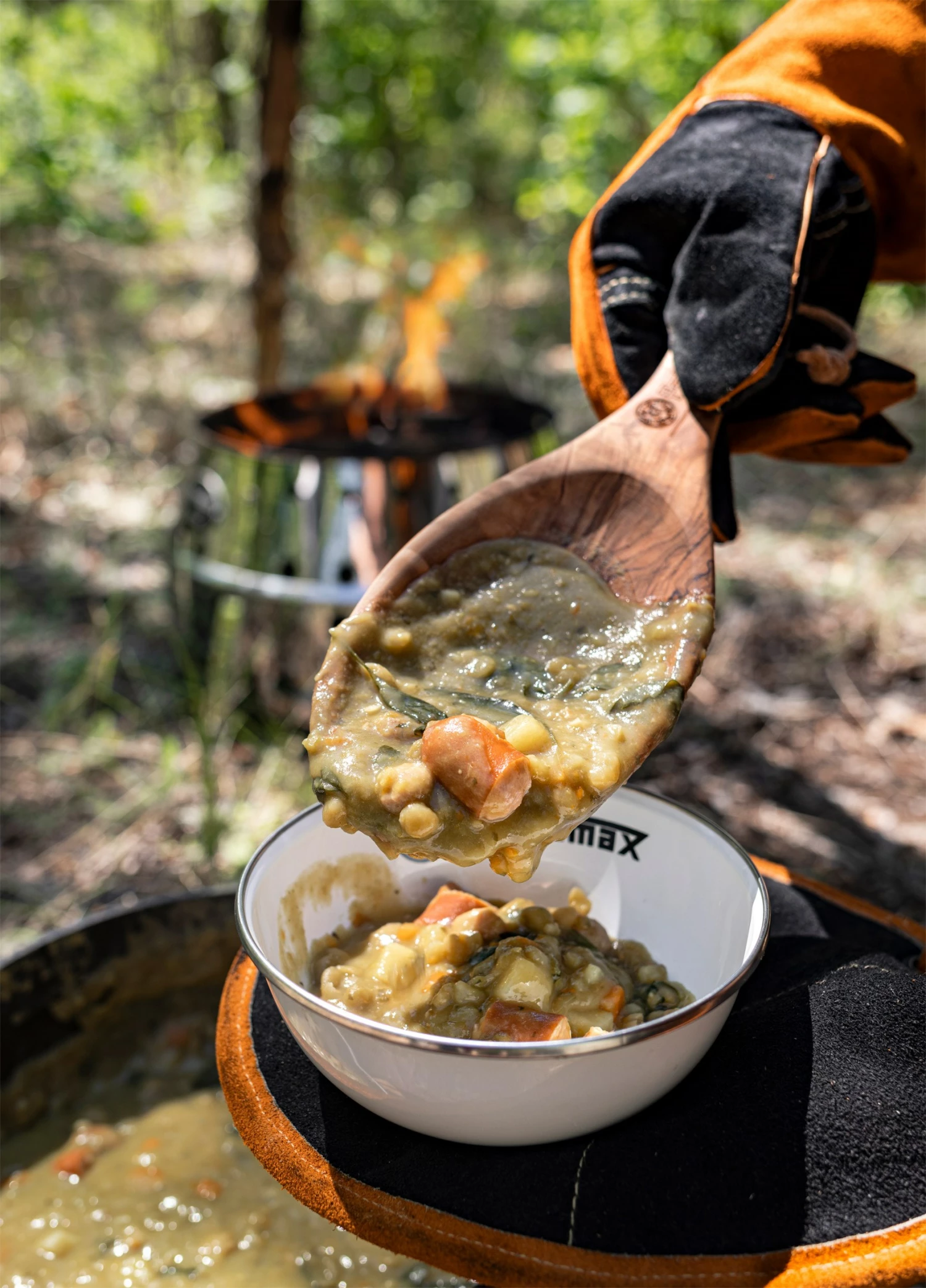 Du kan bruge den 25 cm. lange og lille og flade skål på mange forskellige måder, fx som ske, som lille skål, som serveringsfad eller som slev. Det tilpas lange håndtag beskytter dig mod varmen fra gryden eller det varme måltid, mens den samtidig er stor nok til at servere mad på og dermed bruges som ægte bushcraft-tallerken, når du nyder dit måltid omkring bålet.