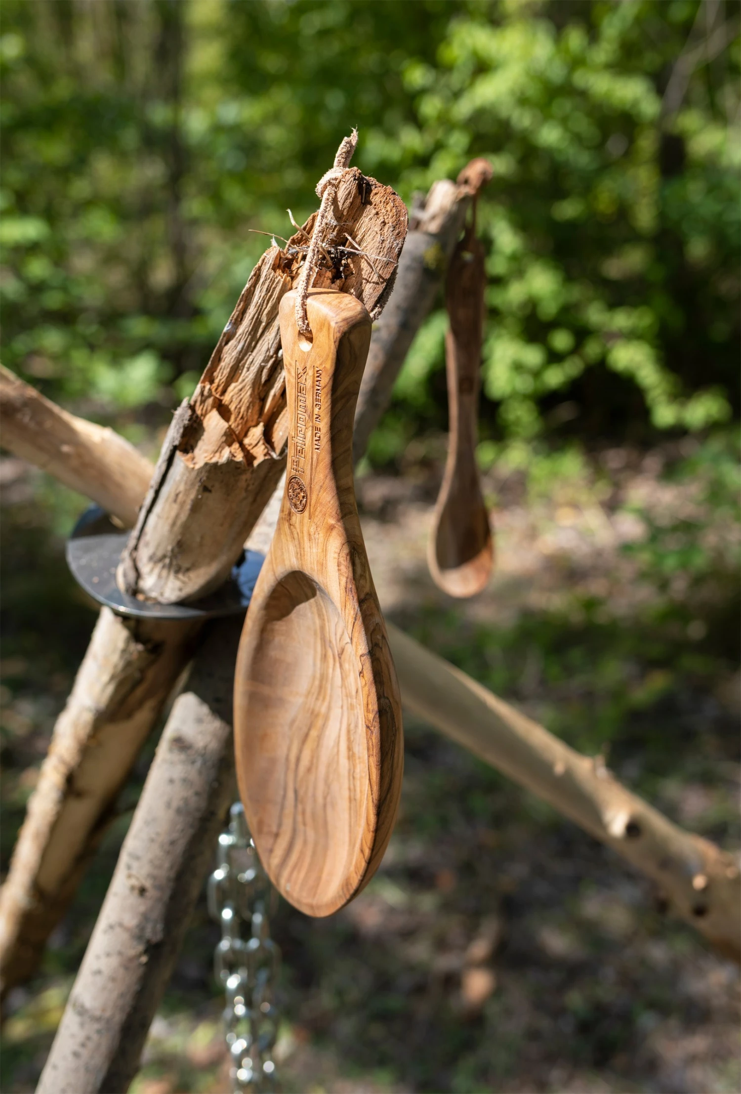 Alle Petromax’ oliventræsprodukter er håndlavede i Tyskland af træ fra Olea Europaea-træet. At fælde træet sent i dets levetid er en bæredygtig praksis, der skåner produktionsressourcerne. Takket være olievoksfinishen er denne oliventræskål meget holdbar, og den kan fastgøres til dit bælte eller din rygsæk ved hjælp af læderløkken, som også gør, at du bare kan hænge den op i dit udekøkken i skoven. Og graveringen af det ikoniske Petromax-logo tilføjer et særligt fint touch til denne unikke skål.