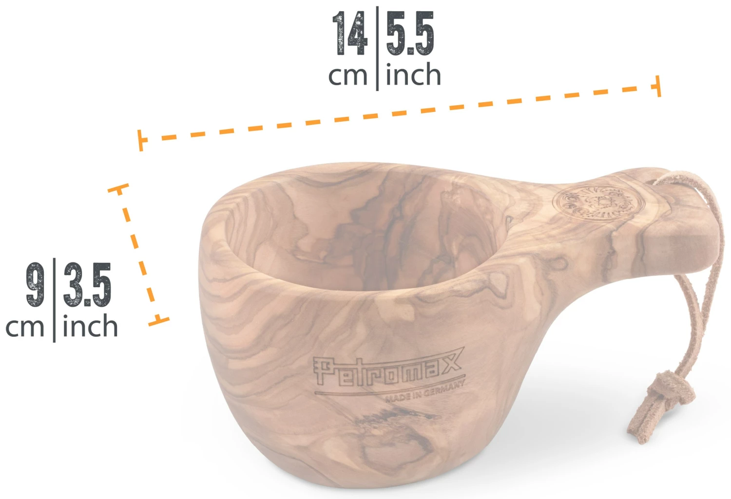 Oprindeligt blev en kuksa af samerne udskåret af birk ved hjælp af nogle få værktøjer såsom en kniv og økse, og efterfølgende blev den måske pyntet med et stykke rensdyrgevir og en læderrem. Ifølge traditionen blev kuksaen aldrig vasket efter brug, men blot skyllet i en å eller en sø. Oliventræet, som Petromax anvender i denne mere moderne udgave, har den fordel, at det er ridsefast, hygiejnisk, uigennemtrængeligt for syre og at det ikke absorberer lugt, hvilket gør det til det ideelle materiale til spisegrejet til alle dine eventyr under åben himmel. På grund af olievoksfinishen behøver du ikke – som det er tilfældet med en kuksa i birketræ – at behandle Kuksa Cup Olive Wood med salt eller malet kaffe. Du kan tage den i brug med det samme.