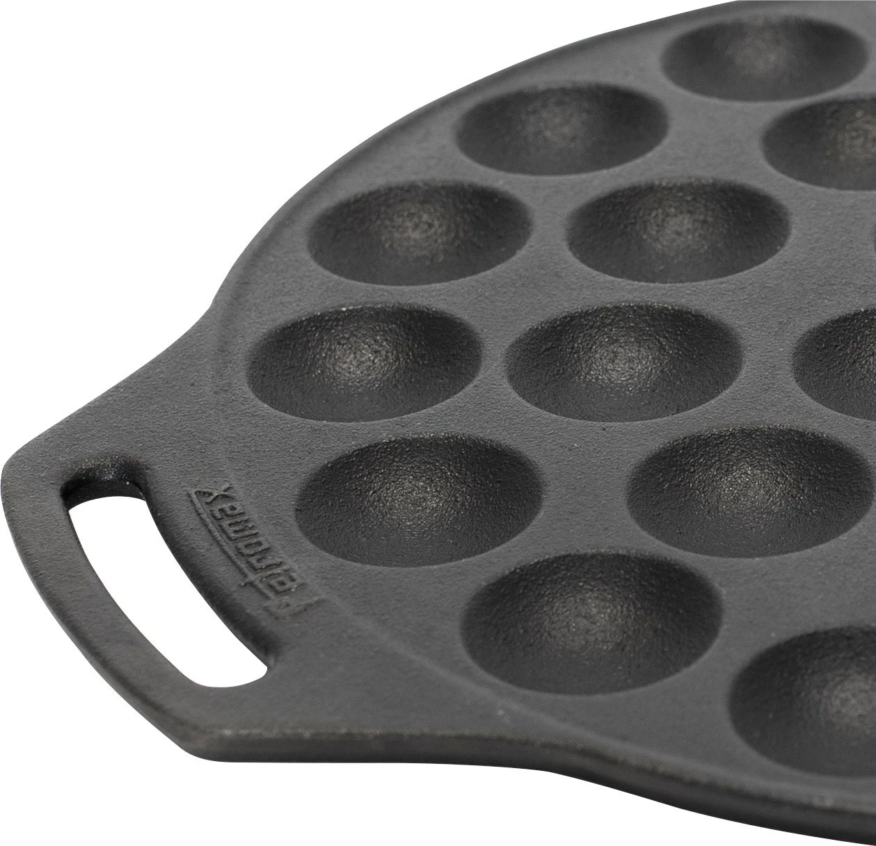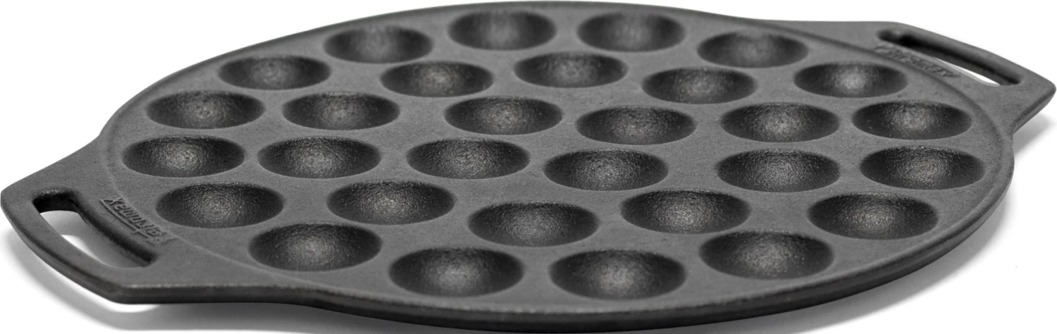 Med denne Poffertjes Pan muliggøres en ekstraordinær dessert i mundrette bidder ved lejrbålet. Med den specielle pande, som naturligvis er af højkvalitets støbejern, bager du 30 stykker af den hollandske minipandekage eller æbleskiver på én gang – og inden for kort tid! Den fremragende varmeledning i støbejernsmaterialet sikrer et flot og ensartet afbagning.