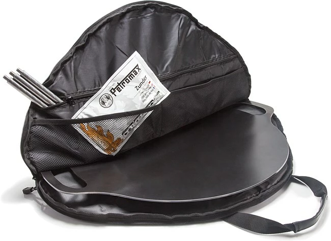 Denne lynlåslukkede beskyttelsespose er perfekt at bruge til transport af dine bålpande med en diameter på op til knap 50 cm. og eventuelle ben opbevares i separat lynlåslomme, så de ikke ridser panden.
