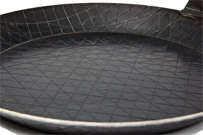 Wrought Iron Pan SP32, som har en diameter på den øverste kant på 32 cm, er en rigtig lækker smedejernspande, som med sin ypperlige varmefordeling er en fornøjelse at stege på. Smedejernet gør det muligt at bruge panden under ekstremt høje temperaturer, hvilket gør, at panden kan bruges på hvilken som helst ovn, komfur eller over åben ild.