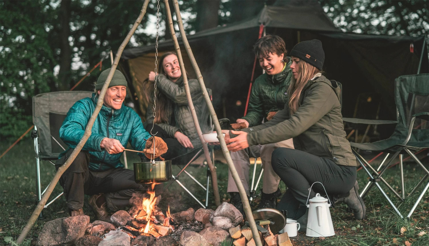 Med denne Bushcraft DIY Tripod behøver du ikke slæbe din store trefod med på tur, når der skal laves mad over åben ild. Du finder blot tre passende pinde, som måske lige snittes eller skæres til, inden de monteres i adapteren, og vupti, så har du din trefod klar til madlavningen over bål!