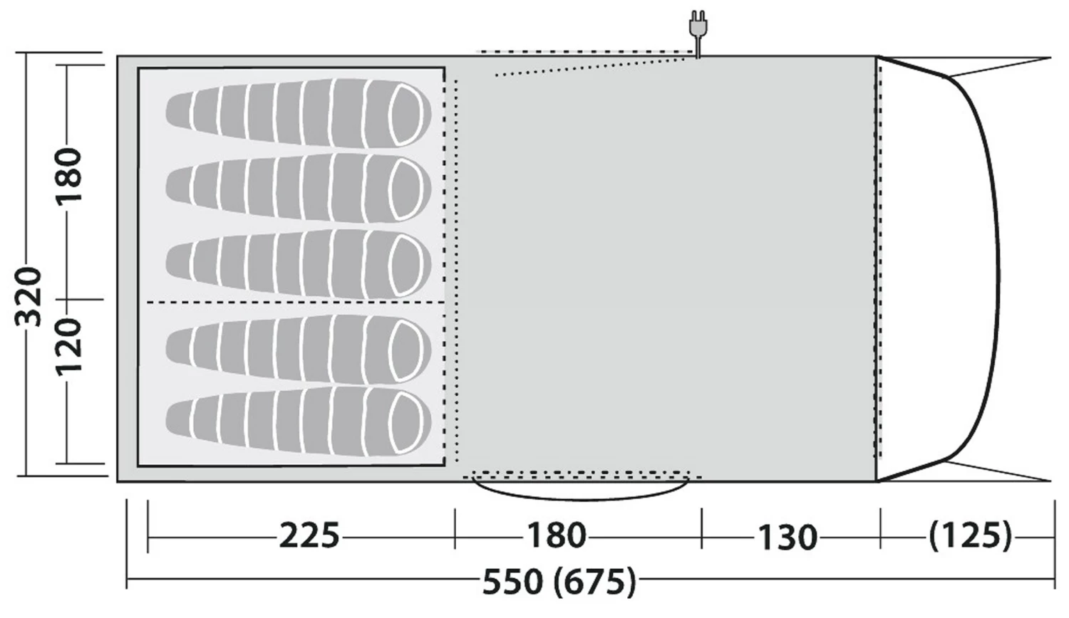 Og hermed indfrier dette meget store og rummelige Eagle Rock 5XP Tent fra Robens samtlige forventninger, vi måtte have til et både brugervenligt, solidt og funktionelt familietelt. Detaljerigdommen er slående! Robens Eagle Rock 5XP Tent er et rigtig lækkert tunneltelt, hvor der gennem konstruktionen med de ekstra stejle vægge især er lagt vægt på et ekstra stort opholdsrum til spisning, leg og forskellige aktiviteter. I den store sovekabine, som kan opdeles i to ved hjælp af et lynlåslukket panel, er der plads til op til 5 overnattende (eller to voksne og fire børn), da det totale grundareal er 300 cm. bredt og 225 cm. dybt. Da inderteltet er sektionsopdelt i to, hvor kabinerne er hhv. 120 og 180 cm. brede, kan den ene halvdel lynhurtigt klipses af og rulles ind mod midten og fikseres, hvis der kun er brug for ét af inderteltene, hvormed selve apsisarealet øges betragteligt. En rigtig fin detalje!