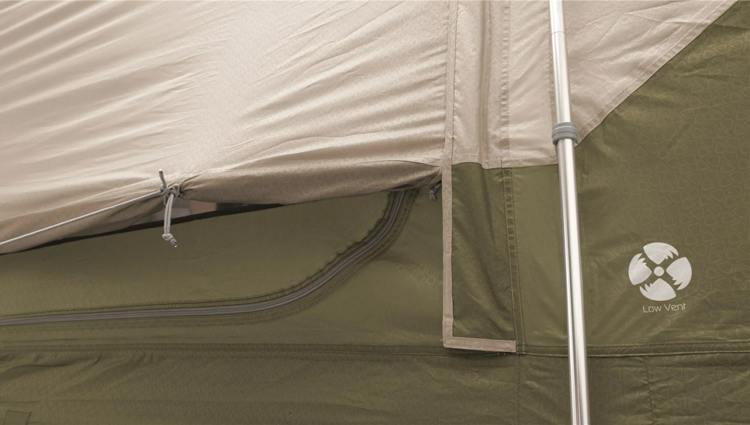 Eagle Rock 6+2XP Tent har indgang enten gennem den meget brede dør i fronten af apsis eller gennem den overdækkede sidedør i hver side. Disse døre er todelte, så man på de varme dage kan vælge blot at lukke af med myggenet, medens den brede frontdør er udstyret med et myggenet på den nederste del. Disse åbninger giver – sammen med de regulerbare Low Vents™ nederst på bagsiden af oversejlet – samtidig mulighed for masser af ventilation i teltet, så kondensdannelsen minimeres.