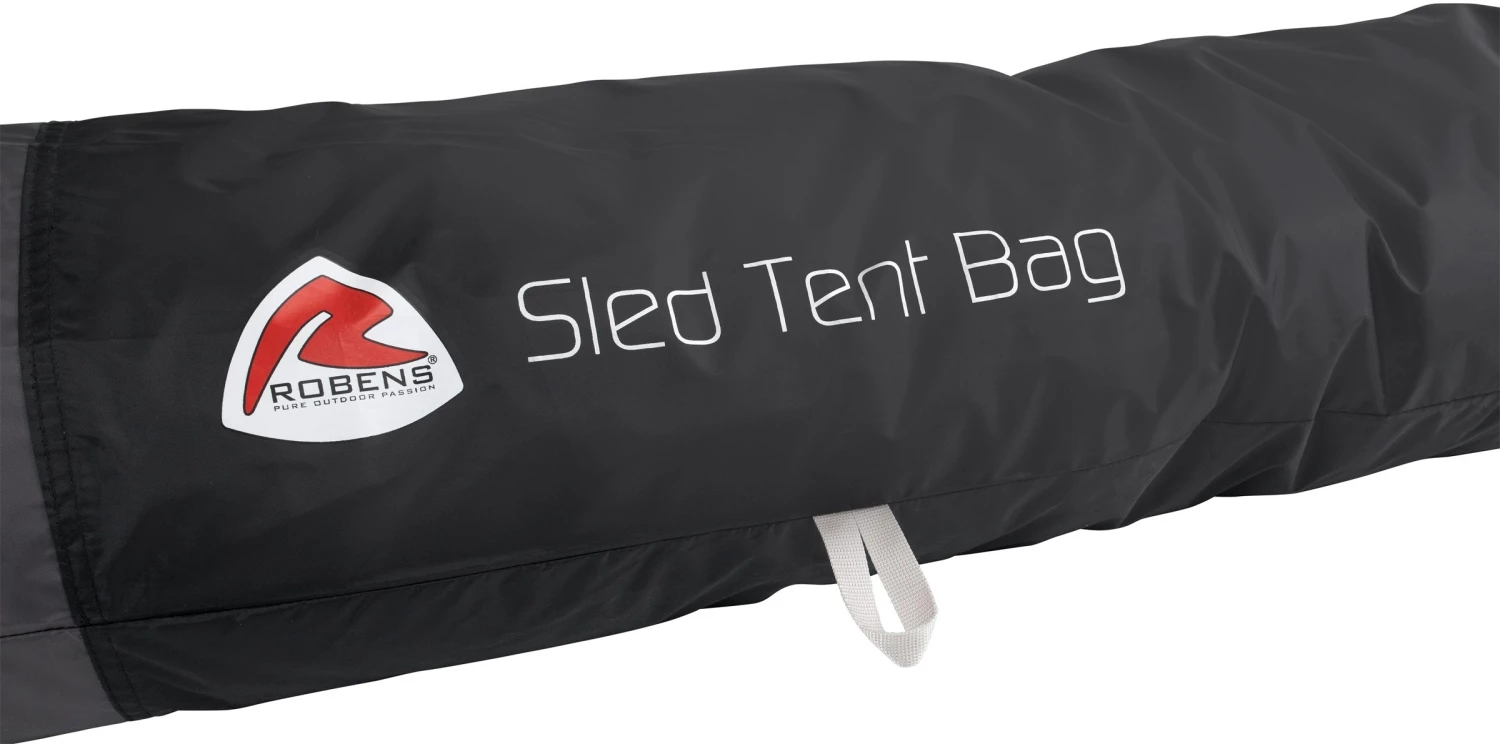 Robens Sled Tent Bag er fremstillet af 100% vandtæt og meget slidstærkt 75 Denier polyester og fastgøres på pulken ved hjælp af de 8 fastgørelsespunkter.