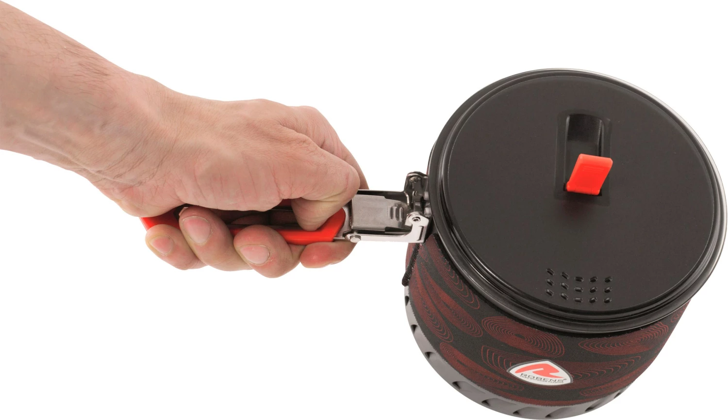 Robens Turbo Pot Pro leveres med grebsvenligt låg af fødevaregodkendt Tritan™ og kan også bruges som dørslag. Det varmeisolerende og ekstra stabile håndtag kan indfældes, så gryden fylder mindst muligt i oppakningen.