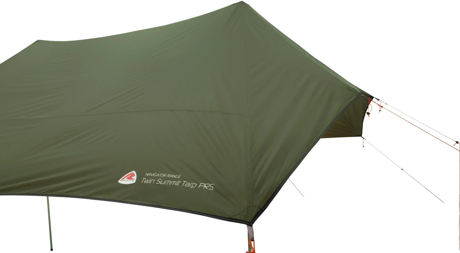 Robens Twin Summit Shelter PRS er en meget stor og alsidig tarp, som er designet således, at de to justerbare stænger er placeret væk fra kanten, så teltmaterialets front og bagende giver ly for vind og regn, som man ikke er beskyttet imod ved brug af en almindelig tarp.