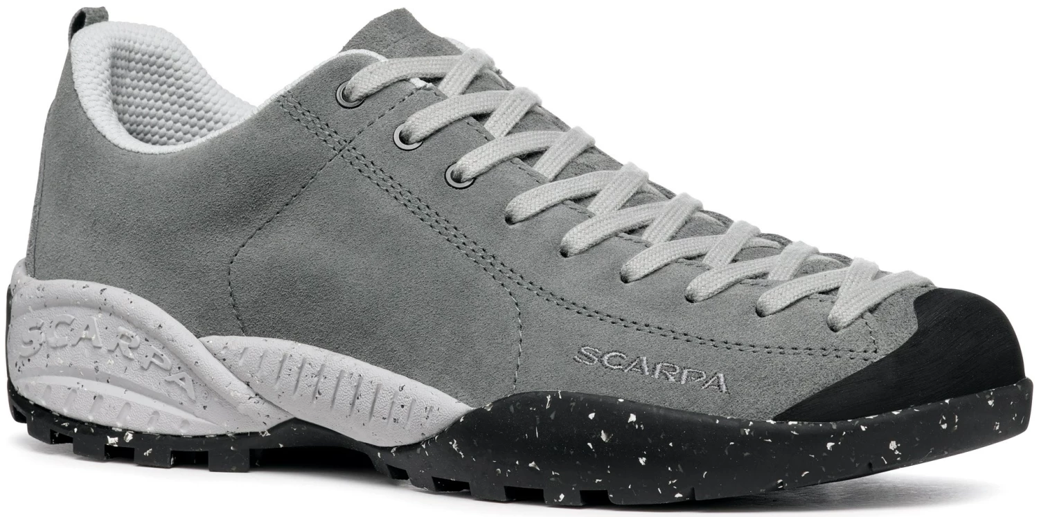 Scarpa Mojito Planet Suede Women er fremstillet med en overdel af 1,8 mm Evolo® Recycled Suede og snuden er ekstra forstærket med en kraftig gummibelægning, der tager sliddet, når der sparkes til småsten, klippestykker osv.