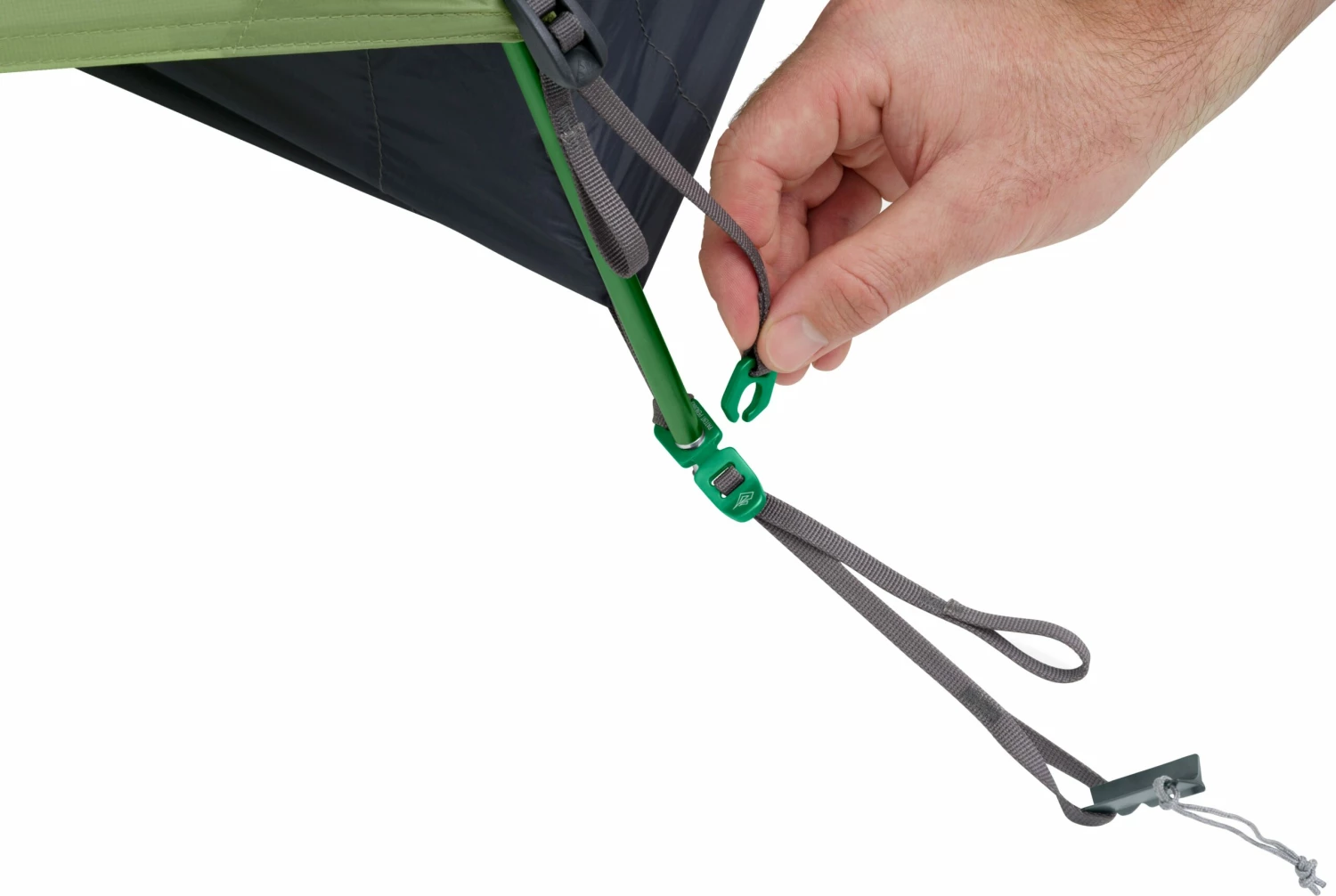 Som stangmateriale er der anvendt en kombination af DAC Featherlite® NFL™ og DAC Pressfit® med varierende diametre for maksimal styrke og minimal vægt, og de patenterede Quick Connect Tent Feet™ gør det nemt og hurtigt og med kun én hånd at fiksere stangenderne til yder- eller inderteltet og efterfølgende finjustere opstramningen af teltet.