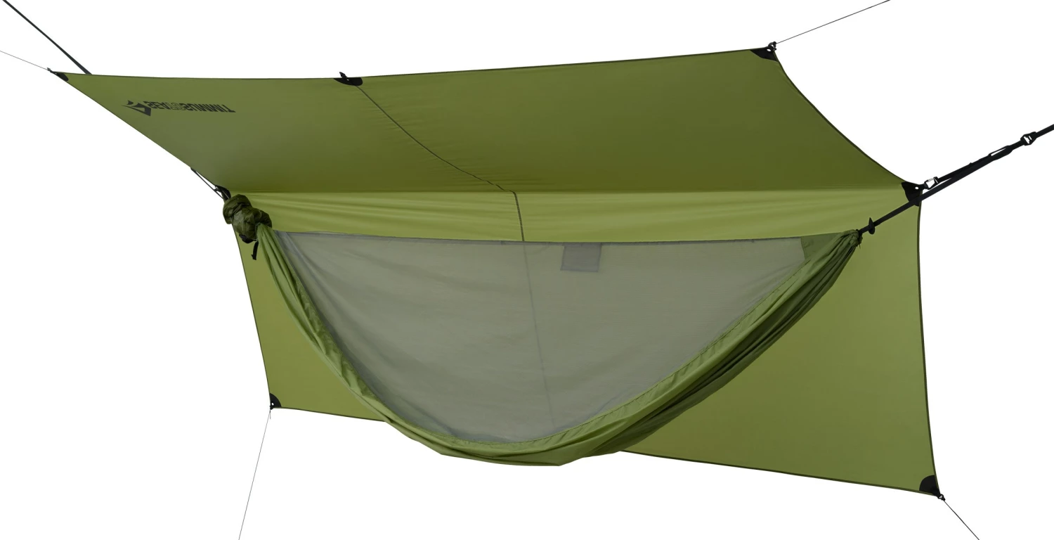 Som navnet antyder, er denne Jungle Hammock Tarp fra Sea to Summit udviklet til at passe perfekt henover deres Jungle Hammock Set, men naturligvis kan denne uhyre lette og kompakte tarp også bruges i alle mulige andre sammenhænge, fx med et par vandrestave eller spændt ud mellem et par træer.