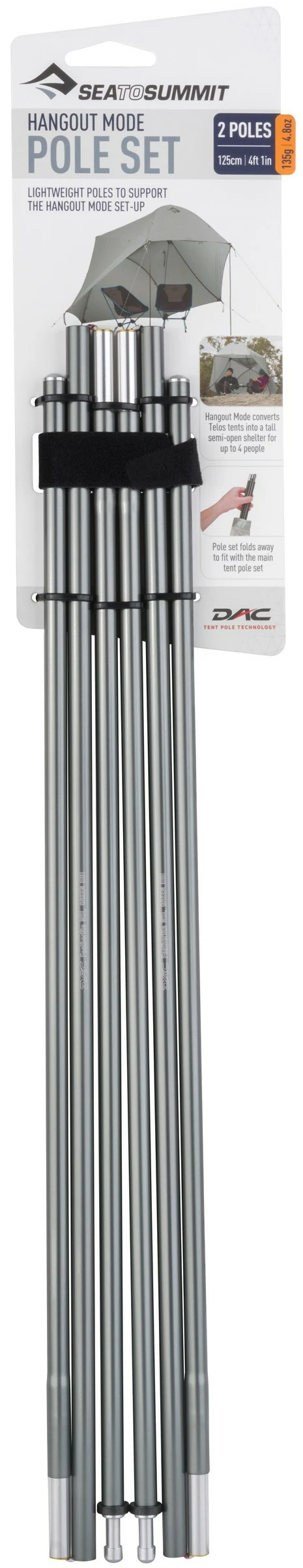 Det unikke ved Telos-teltene fra Sea to Summit er den store alsidighed, for med den specielle stangkonstruktion åbnes der mulighed for – med et sæt vandrestave eller dette Telos Hangout Pole Set – at anvende oversejl og stænger som en beskyttende tarp eller vindsejl, hvis man skal sidde i ly for regn og vind eller den brændende sol.