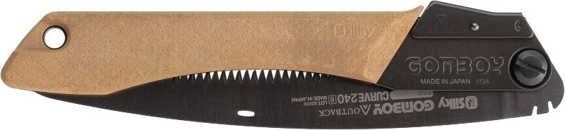 Den kraftige og tilpas stive savklinge gør denne Gomboy Curve Outback Edition anvendelig til det hårdeste skærearbejde. På hele klingen – inklusive tænderne – har man påført en sort belægning af en unik nikkel- og tinblanding. Dette giver en væsentlig forlænget levetid på klingen og en helt utrolig saveevne, også i vådt og frisk træ. Derudover gør den sorte klinge med den lave refleksion denne sav oplagt til alle de snigende aktiviteter, hvor man ikke ønsker at påkalde sig alt for meget opmærksomhed.