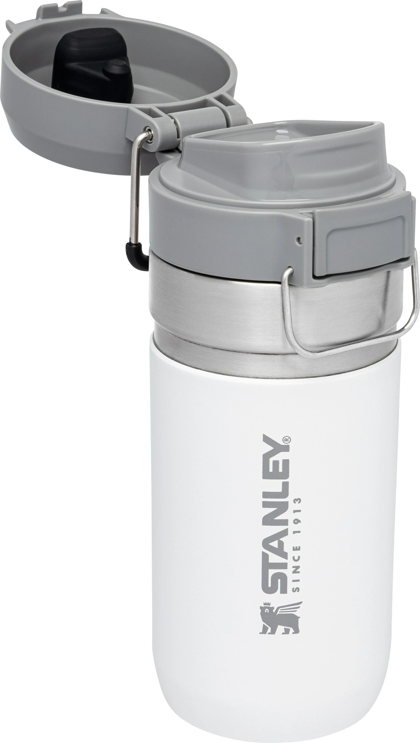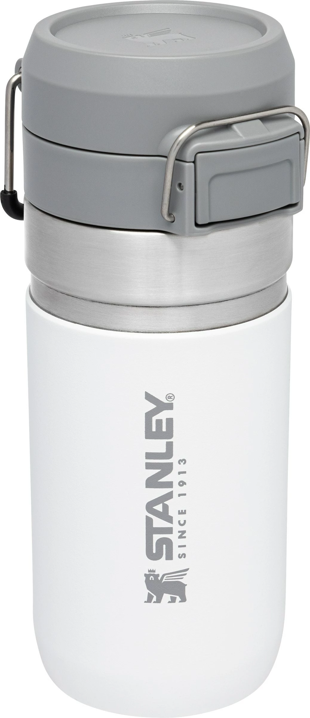 The Quick-Flip Water Bottle .47L er nemlig et virkelig, virkelig lækkert termokrus eller -flaske, som er fremstillet af pulverlakeret og rustfrit 18/8 ædelstål med vakuum mellem de to vægge og med pakningssikret skruelåg af BPA-frit polycarbonat. Og så er flasken selvfølgelig lavet med en diameter, som passer perfekt ned i bilens kopholder.